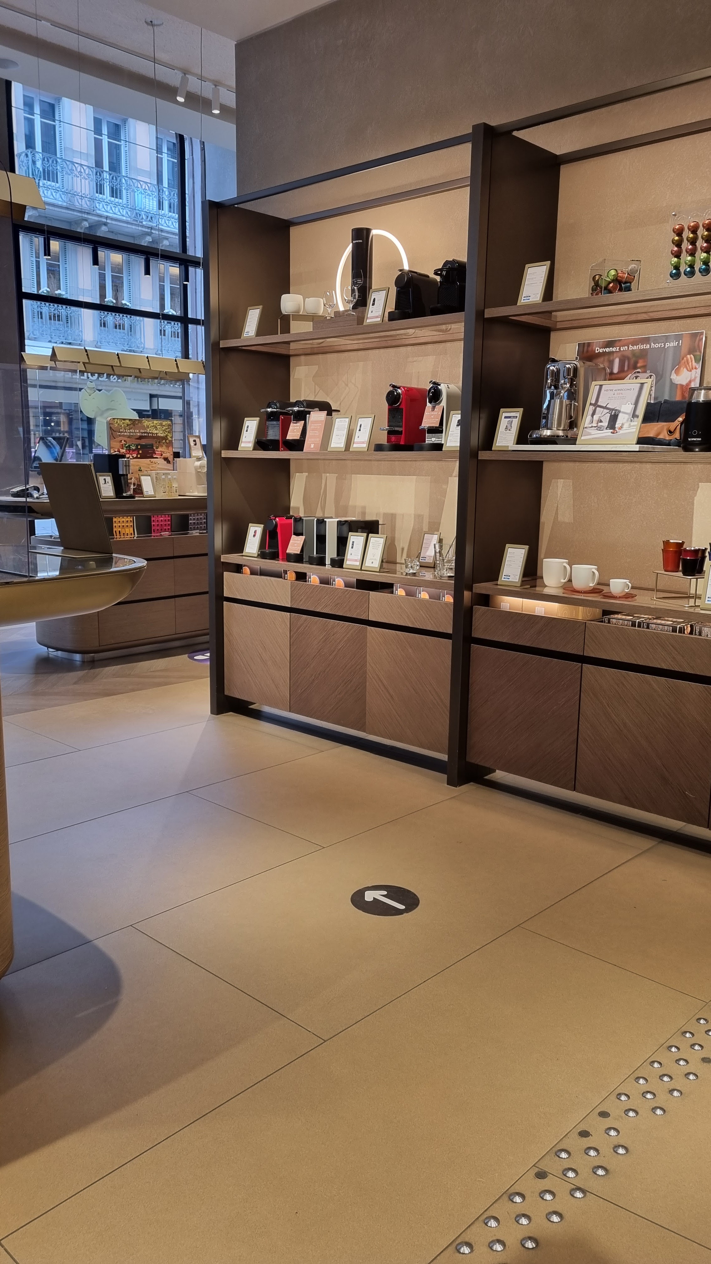 Attente devant la boutique longue ceci pour être dirigé vers une machine pour faire son achat soit même. Incroyable pour une boutique de ce type. En partant même pas un aurevoir ou une question pour savoir si mon expérience client c'est bien passée. L'intérêt d'acheter ses capsules en boutique chez Nespresso perd de son sens. Pas une seul conseil donné sur les types de cafés disponibles