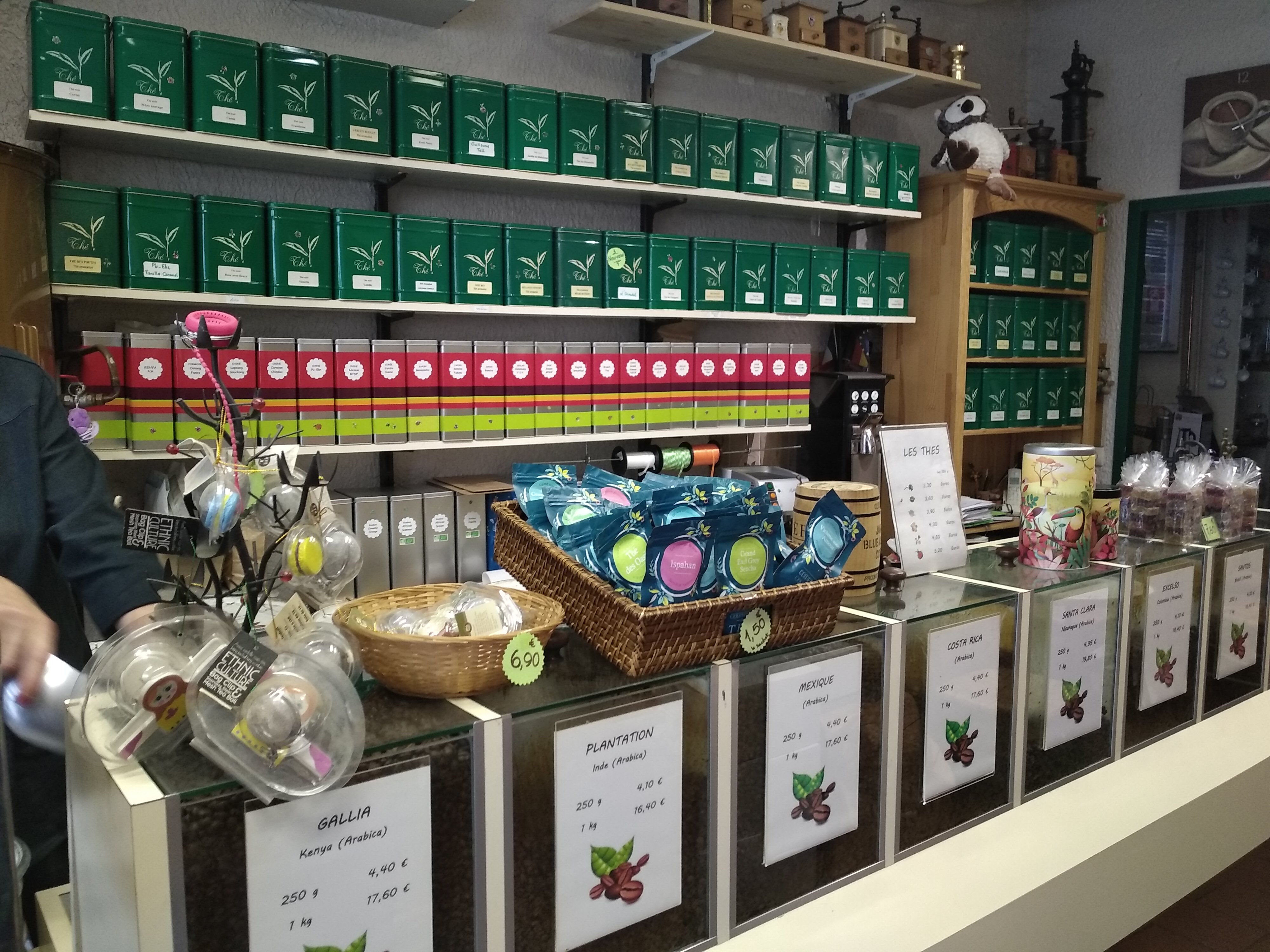 Un choix de café et de thé impressionnant, il y en a pour tous les goûts . Et plein d'objets en rapport avec thé et café : tasses, théière, boîtes... Un endroit à ne pas manquer avec sa propriétaire très sympathique
